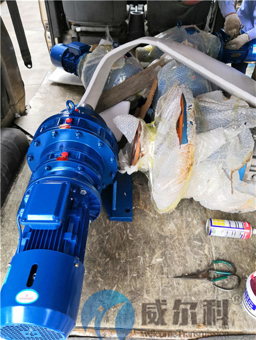 向我司采購擺線針輪減速機配套剎車電機7臺,具體型號是XWED74-320-YEJ2.2 5臺 XWED63-187-YEJ1.5 2臺,上圖為我司物流部門人員簡單打包,裝配電機,隨后送到客戶工廠。窯爐設(shè)備專用減速機就選威爾科。